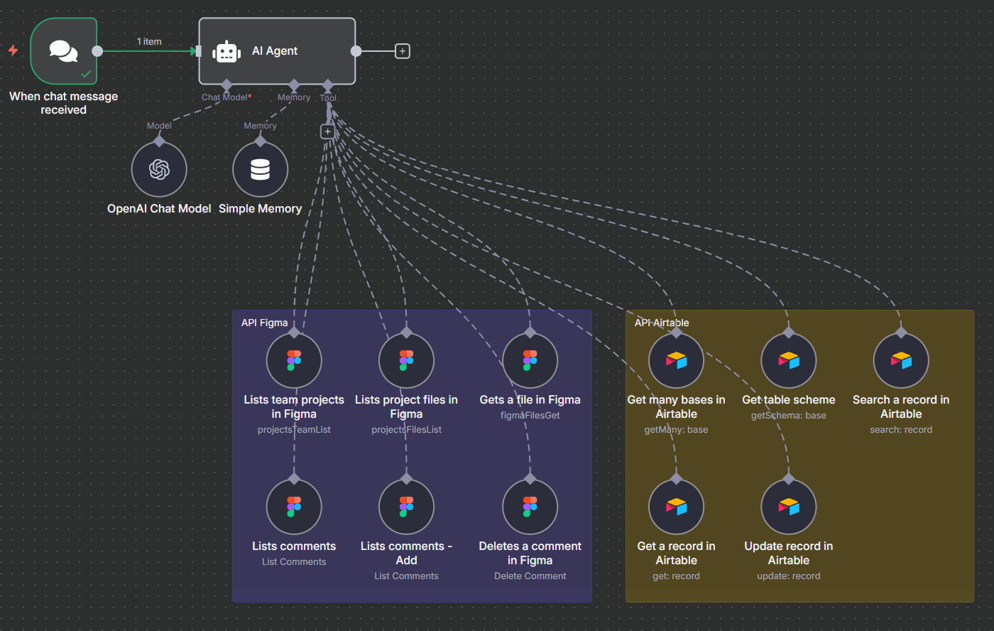 Exemple de workflow pour déployer un Agent IA pour synchroniser Figma et Airtable